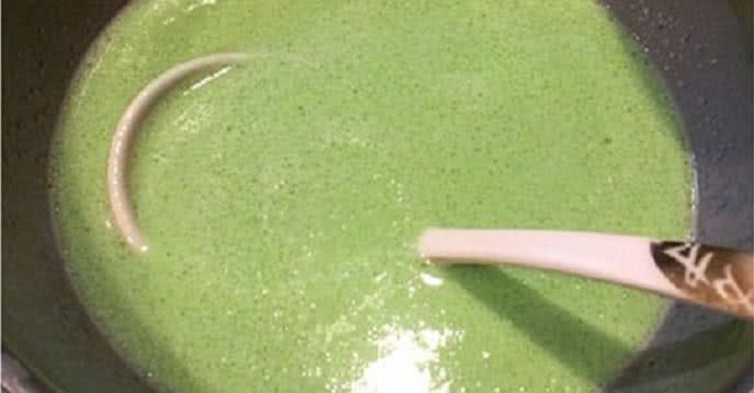 Bước 2: Nước cốt dừa hỗn hợp với đường để nguội, tiếp theo, đổ nước cốt lá dứa vào và khuấy đều.