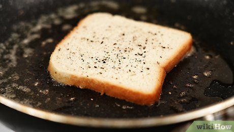 Đặt bánh mì vào chảo. Đảm bảo bề mặt chảo được phủ đều bởi bơ hoặc dầu, sau đó đặt một lát bánh vào. Tiếp tục ngay sang bước tiếp theo.