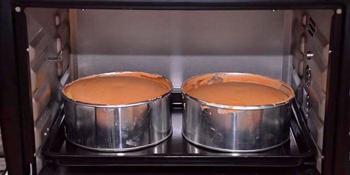 - Đặt bánh vào lò nướng 40-45 phút, giảm nhiệt độ xuống 160 độ C.