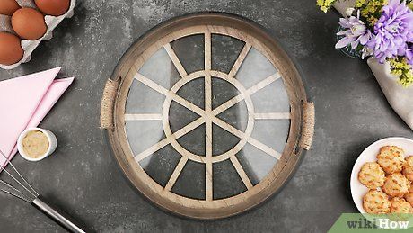 Điều này sẽ giữ thức ăn chặt chẽ và giảm thiểu rò rỉ. Bạn có thể tìm thấy các khay đặc biệt dành cho bữa sáng trong giường, hoặc bạn có thể sử dụng một cái bàn làm việc laptop thay thế. Đặt khay ra trên bàn trước khi bạn bắt đầu nấu ăn để bạn có thể đặt thức ăn lên khi bạn làm.