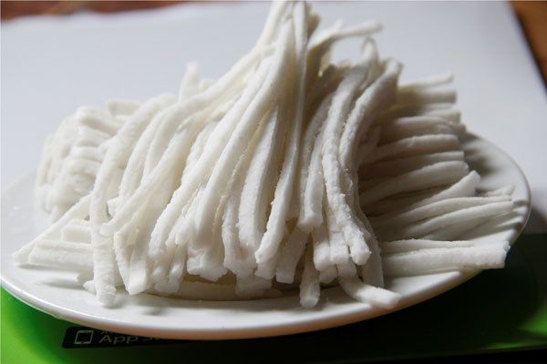 Nhồi và nhào bột với nước, làm thành những cục tròn nhỏ, dẹt và sẵn sàng cho việc cắt thành sợi mỏng.