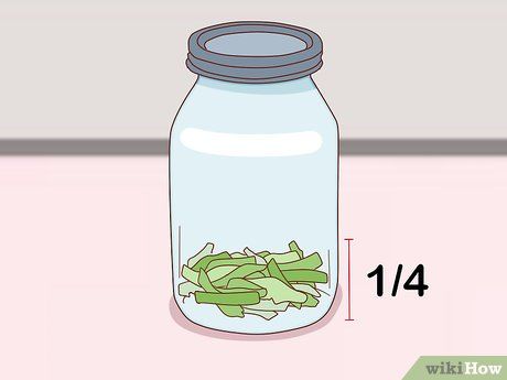 Lấp đầy 1 hũ 1 US quart (khoảng 950 ml) 1/4 với rau cải. Chặt nhỏ các loại rau xanh thành miếng từ 1 đến 2 inch (từ 2.5 đến 5.1 cm) trước khi đặt chúng vào hũ và lột bỏ vỏ của đậu xanh hoặc bắp. Đặt cả hai loại vỏ của đậu xanh và bắp vào hũ.