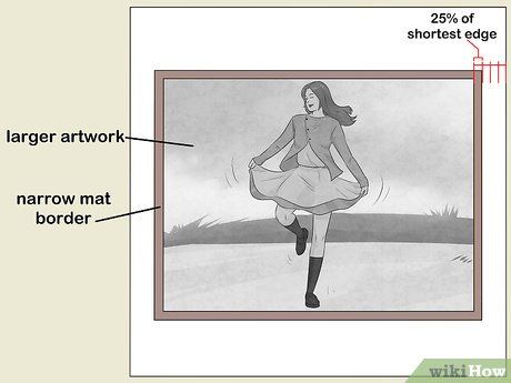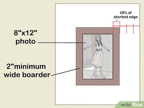 - Việc đo viền sẽ phụ thuộc vào kích thước của tác phẩm. Viền của bạn nên đo rộng ít nhất là 25% của cạnh ngắn nhất. Vì vậy, nếu tác phẩm của bạn là 8 in. bởi 12 in. (20.32 cm bởi 30.48 cm), bạn sẽ cần tối thiểu 2 inch (5.08 cm) cho viền. Tăng lên một inch hoặc hai (2.54-5.08 cm) để làm cho viền rộng hơn.
