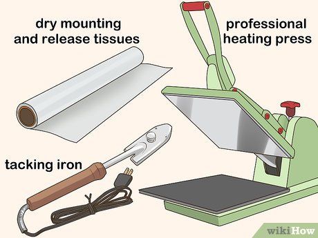 Mua thiết bị nếu bạn dự định làm khô tác phẩm. Làm khô (thay vì sử dụng băng keo) là một quy trình phức tạp hơn. Nếu bạn muốn một cách gắn cố định và ổn định hơn và bạn không ngại mở ví tiền của mình, hãy thử! Bạn sẽ cần một cái bàn ủi, các loại giấy làm khô và giấy phát hành, và một máy ép nhiệt chuyên nghiệp.