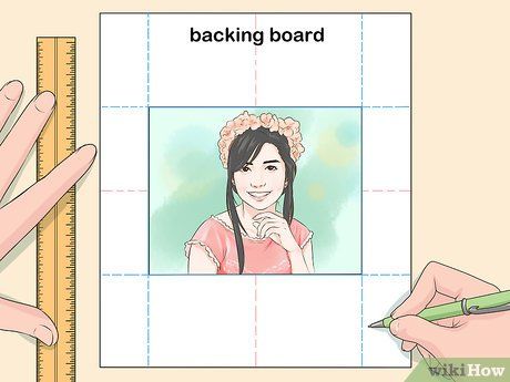 Đo kích thước của tác phẩm và cửa sổ để điều chỉnh tấm lớp dưới. Đến lúc sử dụng toán học! Chọn kích thước bạn muốn cho viền của cửa sổ. Đo kích thước của tác phẩm của bạn. Cộng hai số này lại với nhau để tính toán kích thước cần thiết cho lớp dưới. Đánh hai dấu bút chì ở góc để ghi lại các phép đo của bạn.