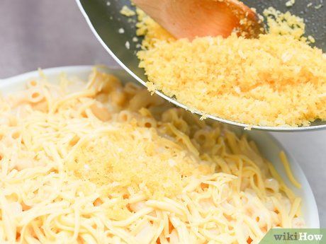 Phủ Bột Chiên Xù Lên Mì Ống. Việc Bạn Cần Làm là Cho Bột Chiên Xù trong Chảo Lên Bề Mặt Mì Ống. Bây Giờ Mì Ống Đã Sẵn Sàng để Nướng!