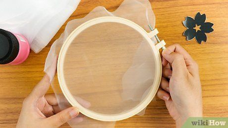 Đặt vật liệu vải mỏng của bạn trong một khung thêu. Mở ốc vít trên khung mở nó và kéo vải của bạn căng ngang qua đáy của khung. Đặt phần trên lại và xoay ốc vít lại. Không quan trọng nếu nó được tập trung; bạn chỉ sẽ sử dụng vật liệu trong vòng tròn của khung.