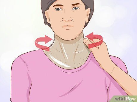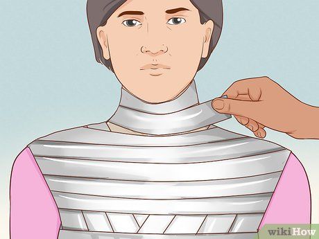 Bọc băng dính xung quanh cổ của bạn. Bọc 1 đến 2 dải băng dính lỏng lẻo xung quanh cổ của bạn. Sử dụng các dải nhỏ để lấp đầy các khoảng trống hiển thị qua.