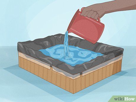 Làm đầy hộp đã lót bằng 7.62 đến 10.16 cm (3 đến 4 inch) nước. Chuyển nước từ bồn rửa vào hộp bằng một cái bình đựng nước. 7.62 đến 10.16 cm (3 đến 4 inch) nước sẽ tạo ra một khối đá đủ dày để trượt.