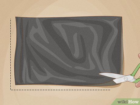 Cắt mở một túi rác dọc theo một bên và dọc theo đường may dưới cùng. Kéo hai bên của túi rác ra sao bạn có một lớp nhựa duy nhất. Bây giờ bạn sẽ có một miếng nhựa lớn.