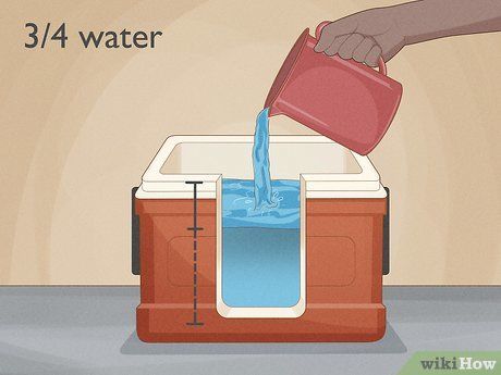 Làm đầy thùng giữ lạnh 3/4 đầy với nước. Đừng làm đầy hết, vì bạn không muốn thùng giữ lạnh phình lên và làm biến dạng hình dạng của nó. Một số người khuyên dùng nước lọc hoặc sôi, nhưng không cần thiết để có được một khối đá trong suốt.
