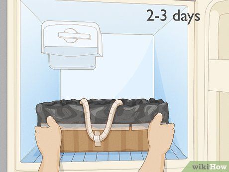 - Bạn có thể cần để thùng giữ lạnh đứng ngược lại một chút và để đá tan chút ít để nó trượt ra. Điều này có thể mất từ 5 đến 30 phút.