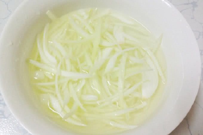 - Sau đó, hãy đặt hành tây vào nước pha dấm loãng trong khoảng 15 phút, sau đó vớt ra để ráo.