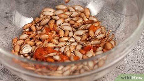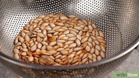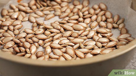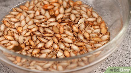- Bạn có thể để hạt bí ngô tự nhiên khô trong 2-3 ngày, đôi khi khuấy chúng xung quanh để cả hai mặt khô đều nhau. Bạn cũng có thể để chúng trong lò sưởi trong 1 giờ ở 325 °F (163 °C) để làm khô chúng.