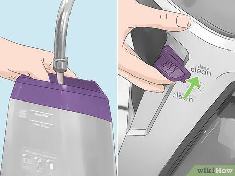 Làm sạch máy sau mỗi lần sử dụng. Đổ nước nóng vào bình chứa nước. Đặt máy vào chế độ dòng tắc nghẽn và đẩy tay vào tư thế nằm. Di chuyển máy đi lại trên thảm trong khi nhấn nút phun trong khoảng mười lăm giây. Thả nút, sau đó nhấn nút trong khoảng mười lăm giây nữa trong khi di chuyển máy đi lại trên thảm. Thả nút lần cuối và hút bụi mà không phun nước cho đến khi máy ngừng hút nước.