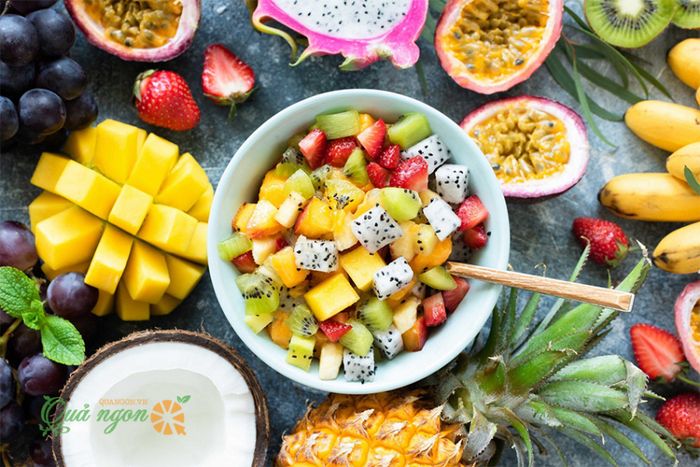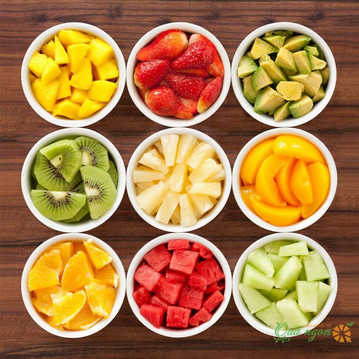 Bước 1: Chuẩn bị trái cây, cắt thành khối và để vào bát trộn lớn.