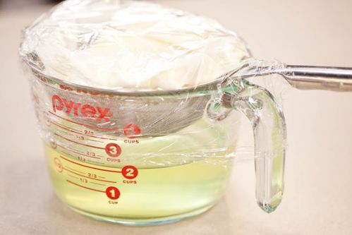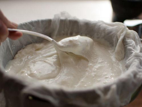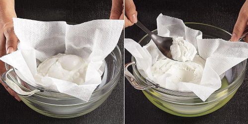 Cho sữa chua vào khăn lọc và lọc nếu không có rổ lọc.