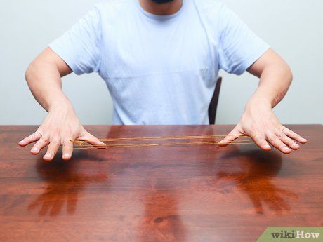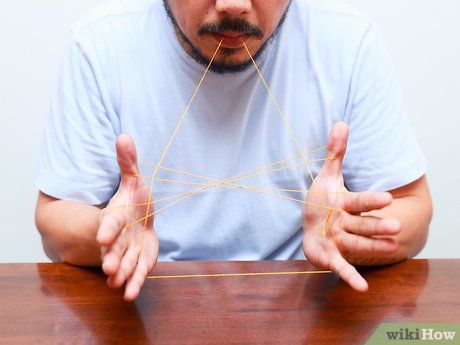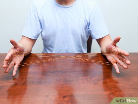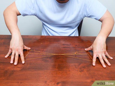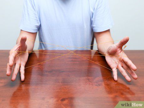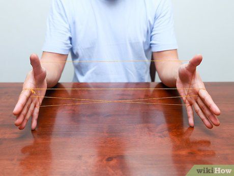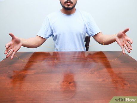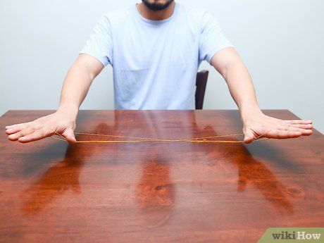 Bắt đầu hình dáng dây của bạn. Đặt dây qua cả hai ngón tay cái của bạn. Bây giờ đặt tay của bạn sao cho lòng bàn tay đang đối diện nhau và cách nhau ít nhất một foot. Di chuyển ngón tay út của bạn dưới sợi dây sao cho dây bây giờ bị kẹp qua chúng cũng. Kéo sợi dây căng thẳng.