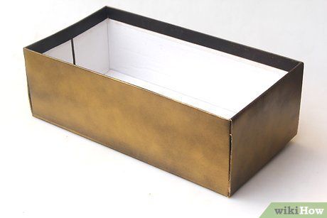 Cover lại các bên của hộp bằng giấy xây dựng màu nâu. Vẽ phần bên của hộp lên một tờ giấy nâu, sau đó cắt chúng ra. Sử dụng keo tacky hoặc keo trắng trường học để dán lên hộp bằng một cọ sơn rộng. Ép các hình cắt ra lên các phần bên tương ứng của hộp.