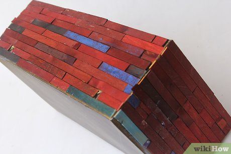 Bọc hộp bằng que gỗ nếu bạn muốn một chiếc xe ngựa thật. Dùng keo nóng để dán các que gỗ vào mỗi bên của xe ngựa, xen kẽ chúng như gạch trên tường. Nếu bạn không có keo nóng, hãy sử dụng keo tacky thay thế. Làm việc một bên mỗi lần, và để mỗi bên khô trước khi chuyển sang bên tiếp theo.