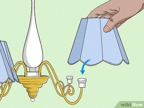 Lắp ráp cơ sở đèn chùm. Vặn tất cả các phần của đèn chùm lại với nhau, ngoại trừ nắp che sẽ được gắn vào trần. Đừng lắp bóng đèn vào vì sẽ dễ dàng và an toàn hơn khi gắn đèn chùm mà không có chúng.
