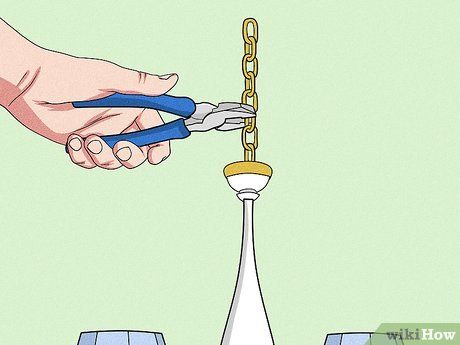 Rút ngắn chuỗi nếu cần thiết. Đèn chùm của bạn có thể có nhiều chuỗi hơn bạn cần. Quyết định bạn muốn một chuỗi dài bao nhiêu, sau đó sử dụng một cặp kìm nặng để mở một trong các liên kết của chuỗi tại điểm đã chọn và loại bỏ chiều dài thừa.