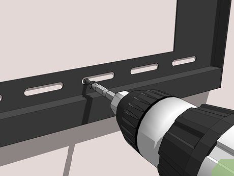 Vặn ốc vít vào tường. Giữ khung gắn lên tường sao cho các lỗ ở trên và dưới phù hợp với các lỗ bạn vừa khoan. Đưa ốc vít đi kèm với bộ khung qua các lỗ trên khung và vặn chúng bằng tay. Kết thúc việc vặn ốc vít bằng một cây vặn để cố định khung.