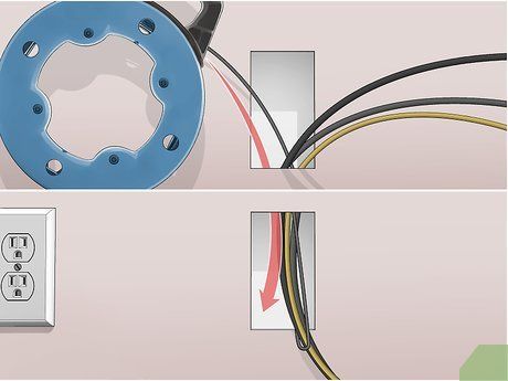 - Điện từ ổ cắm tường hiện có sẽ đi qua các kết nối bên trong tường và cung cấp nguồn cho ổ cắm phía trên.