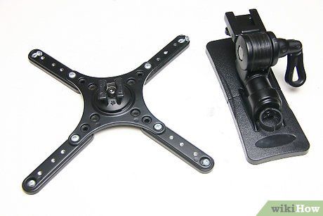 Tìm kiếm bốn lỗ ở phía sau của TV. Đó là nơi bạn sẽ đặt khung gắn mà bạn đã mua. Có thể có ba phần cho khung gắn của bạn. Hai khung nhỏ sẽ gắn vào TV của bạn.