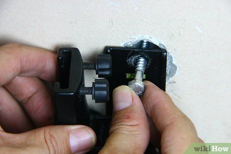 Tìm các thanh gỗ trên tường.thạch caoCách tốt nhất để tìm các thanh gỗ là sử dụng máy tìm thanh gỗ, mà bạn có thể thuê được, nhưng chúng rất rẻ để mua.Máy tìm thanh gỗ, đặc biệt là những máy rẻ tiền, và đặc biệt là nếu tường là thạch cao và không phải bê tông, không đủ chính xác để đảm bảo bạn tìm thấy trung tâm chính xác của thanh gỗ. Do đó, bạn cần phải khoan một vài lỗ thử 1/8' (0.32 cm) ở nơi máy tìm thanh gỗ cho bạn biết thanh gỗ ở đâu. Bạn sẽ biết khi chúng đụng vào gỗ, và đây là bảo đảm duy nhất của bạn.Nếu không có máy tìm gỗ, bạn có thể gõ vào tường cho đến khi bạn tìm thấy một điểm cứng, sau đó khoan lỗ để tìm vị trí chính xác của thanh gỗ tường.