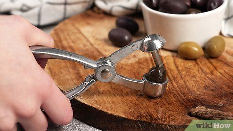 Sử dụng một máy lấy hạt ô-liu để lấy hạt nhanh chóng cho nhiều ô-liu.