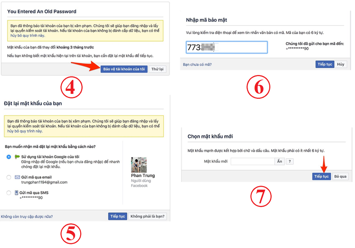 Hướng Dẫn Chi Tiết Bước 4, 5, 6, 7 (Nguồn: Internet)Ghi Chú Để Ngăn Chặn Hack Facebook