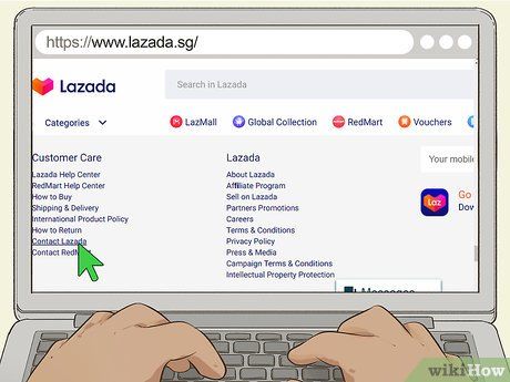 Lướt xuống để tìm liên kết “Liên Hệ Với Chúng Tôi”. Sau khi truy cập trang chủ của địa điểm Lazada cụ thể mà bạn đang cố gắng liên hệ, cuộn xuống khoảng ¾ đường dẫn của trang web đến khi bạn thấy menu “Chăm Sóc Khách Hàng” hoặc “Liên Hệ Với Chúng Tôi”. Liên kết “Liên Hệ Với Chúng Tôi” thường được đặt ở cuối menu “Chăm Sóc Khách Hàng” hoặc “Liên Hệ Với Chúng Tôi”, thường nằm ngay dưới dòng sản phẩm nổi bật cuối cùng trên mỗi trang web của Lazada.