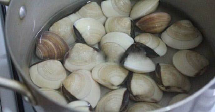 – Ngao rửa sạch cho vào nồi nước luộc cùng với ít dừng đập dập (như vậy sẽ át đi ùi tanh của ngao), 1 ít muối và đường cho đến khi ngao há miệng là được. Tiếp theo tách lấy phần thịt ngao và để phần nước luộc ngao riêng.