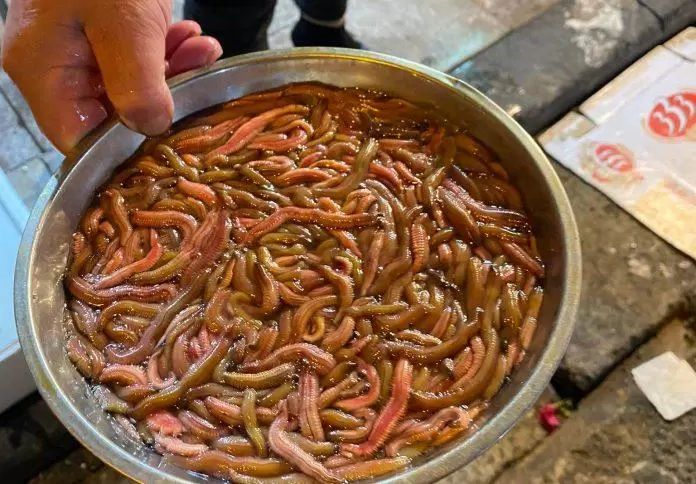 Quá trình chuẩn bị quan trọng trước khi bảo quản rươi. Sau khi mua, đặt rươi vào chậu nước sạch, sau đó dùng tay hoặc đũa nhẹ nhàng khuấy đều để loại bỏ bụi bẩn.