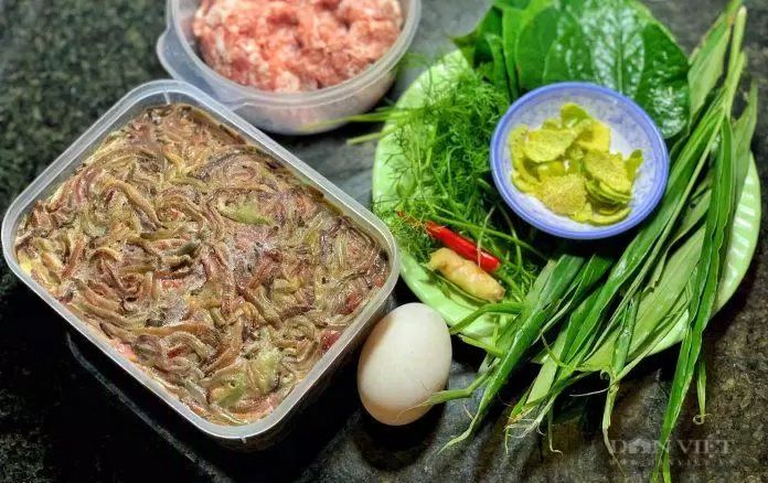 Nguyên liệu cho món rươi kho lá lốt