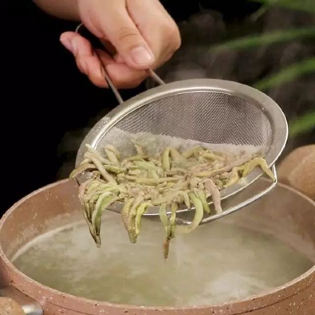 Sau khi sử dụng nước lạnh làm sạch, hãy vớt rươi ra rổ để nước ráo, sau đó chuẩn bị một chậu nước sôi với nhiệt độ khoảng 40 độ C.