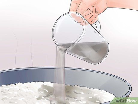 Thêm gạo vào nồi hoặc tô nước. Kết hợp bằng lượng gạo và nước bằng nhau, hoặc sử dụng tỉ lệ bạn muốn sử dụng khi bạn thường nấu gạo. Sử dụng một nồi nếu bạn đang đun gạo trên bếp, hoặc kết hợp gạo và nước trong một tô có thể sử dụng trong lò vi sóng.