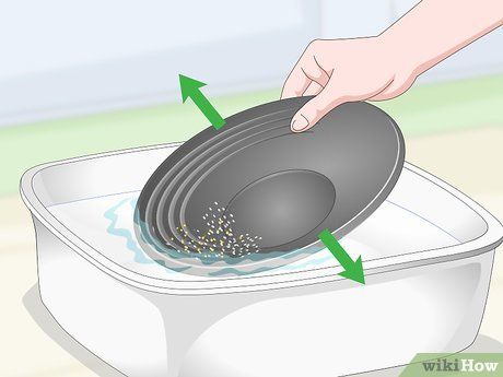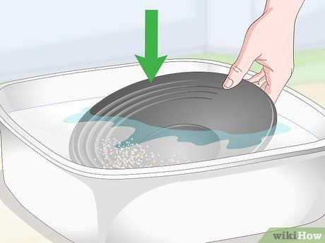 Lấy một chảo vàng và ngâm các bột của bạn trong nước. Chảo vàng được sản xuất thương mại có thể được tìm thấy với giá khoảng 10 đô la hoặc ít hơn trên mạng. Mang các bột nghiền của bạn và pha chúng với nước trong một thùng lớn. Sau đó, ngâm chảo vàng của bạn vào nước, cố gắng lấy càng nhiều bột vào chảo càng tốt.