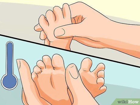 Chạm vào cơ thể của em bé để cảm nhận sự lạnh lẽo. Quan sát xem em bé có dường như rùng mình mạnh mẽ và lạnh lẽo không thường xuyên, đặc biệt là ở tay và chân của cô ấy.