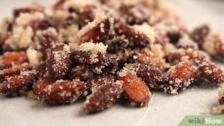 Chuyển hạt hạnh nhân của bạn vào tô hỗn hợp đường. Đừng đợi hạt hạnh nhân nguội—hạt hạnh nhân cần phải còn nóng để đường có thể dính vào. Trộn hạt hạnh nhân của bạn trong khoảng 2-3 phút để chúng được phủ đều đường.