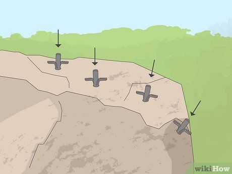 Khoan một số lỗ có đường kính 1⁄2 inch (1.3 cm) vào bề mặt của tảng đá và loại bỏ bụi bẩn. Khi đeo kính bảo hộ, khoan một loạt các lỗ cách đều nhau trên bề mặt của tảng đá.