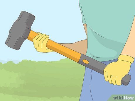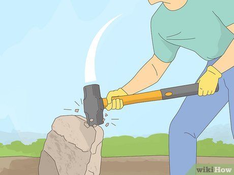 Phá hỏng đá bằng cái búa bằng cách đánh chính xác vào lớp vỏ. Đưa cái búa xuống mạnh mẽ dần dần vào đá được che phủ để nó sẽ nứt vỡ cuối cùng.