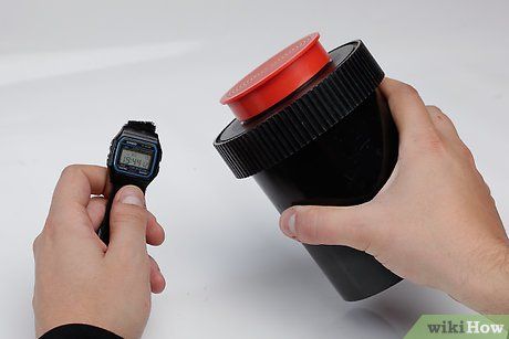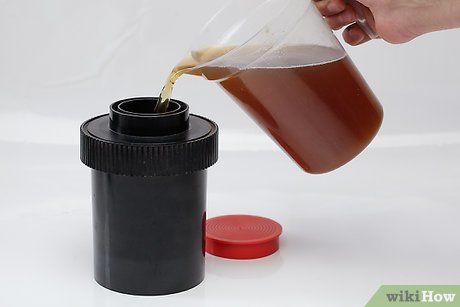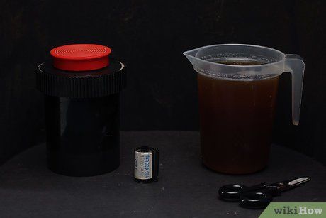 Phim đen trắng thông thường được làm từ halide bạch kim, một chất hóa học có thể được phát triển bằng dung dịch kiềm để làm nổi bật những hình ảnh mà người ta đã chụp bằng máy ảnh. Nhiều chất liệu có thể hoạt động như 'chất phát triển,' nhưng phần khó là phải điều chỉnh độ kiềm đúng để chất phát triển có thể làm nổi bật hình ảnh: hầu hết các chất phát triển chỉ riêng lẻ sẽ chỉ cho hình ảnh mờ mờ, không rõ ràng. Một cách dễ dàng để phát triển phim tại nhà là sử dụng cà phê, vitamin C, và soda rửa. Hai thành phần đầu tiên kết hợp với nhau để tạo thành một chất phát triển hiệu quả; soda rửa tăng kiềm cho dung dịch và khi phim được đặt vào hỗn hợp, hình ảnh được phát triển. Phương pháp cà phê và soda rửa ít chính xác hơn so với những gì bạn có thể quen thuộc với các chất phát triển thương mại; hãy thử nghiệm với tỷ lệ thành phần khác nhau và điều chỉnh độ phơi sáng của máy ảnh của bạn để có được cái nhìn bạn muốn cho các bức ảnh của mình. Kỹ thuật này đòi hỏi một thùng phát triển, một thiết bị chụp ảnh nhà làm đơn giản mà bạn có thể tải phim chưa phát triển lên và đóng chúng vào trong một thùng có dung dịch phát triển. Thùng phát triển có sẵn tại bất kỳ cửa hàng cung cấp nhiếp ảnh địa phương nào.
