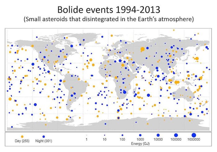 Thực tế, Trái Đất thường xuyên bị tấn công bởi thiên thạch nhỏ, có đường kính từ 1-20 mét. Hầu hết các thiên thạch kích thước này tan rã trong khí quyển và thường là vô hại.