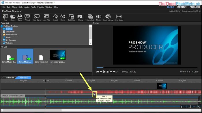 Việc chèn 2 file nhạc chồng lên nhau trong Proshow Producer đã hoàn tất.