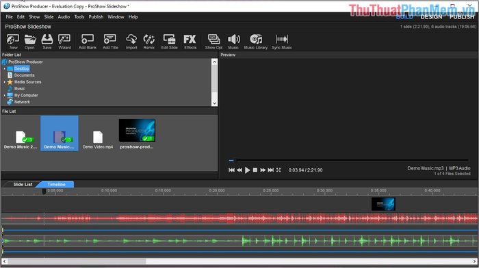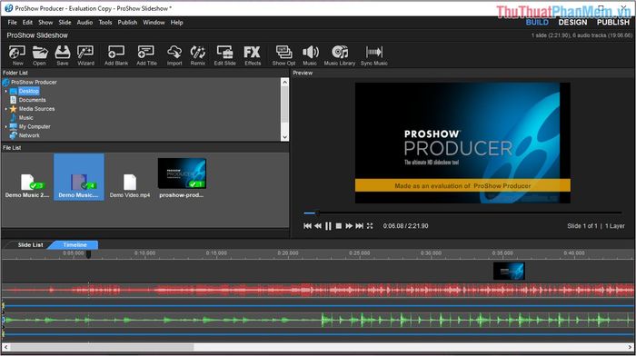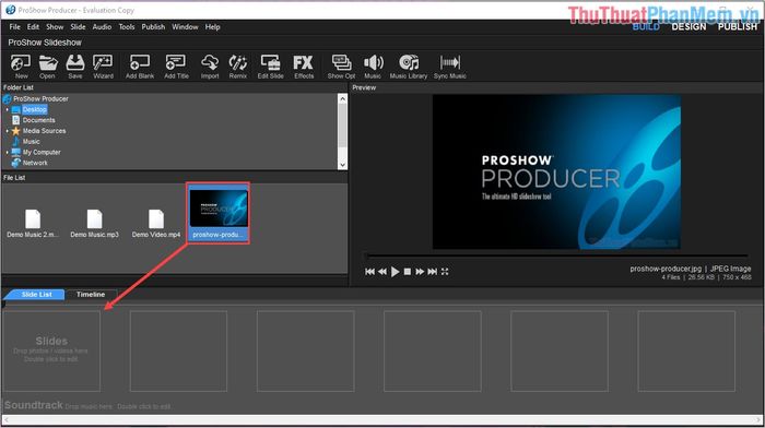 Bước 1: Khởi động Proshow Producer và thêm hình ảnh, video vào Slide List.