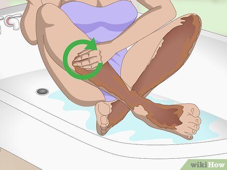 Sử dụng tẩy trong phòng tắm 1 đến 2 lần mỗi tuần. Lấy khoảng 1 muỗng canh (7.5 g) tẩy, và xoa lên các cánh tay và chân của bạn bằng cử động tròn mềm mại, khoảng 60 giây. Rửa sạch tẩy khi bạn hoàn thành.