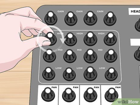 Thay đổi âm cao, âm trung và âm trầm để điều chỉnh các tần số nào truyền qua. Mỗi kênh trên máy trộn của bạn có một cột các núm điều chỉnh âm cao, âm trung và âm trầm cho kênh của bạn. Núm âm cao điều chỉnh các tần số cao, núm âm trung điều chỉnh các tần số thấp nhất, và núm âm trung thay đổi mọi thứ ở giữa. Lắng nghe đầu vào âm thanh trên kênh khi bạn điều chỉnh các núm để xem nó làm thay đổi âm thanh như thế nào.