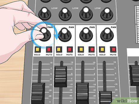 Điều chỉnh núm pan để đặt âm thanh của kênh vào loa trái hoặc phải. Các núm pan điều chỉnh cân bằng giữa loa trái và phải, và chúng thường được đặt trực tiếp phía trên thanh trượt kênh. Khi núm trỏ xuống giữa, âm thanh sẽ phát qua loa trái và phải một cách bằng nhau. Quay núm sang trái nếu bạn muốn âm thanh nổi bật hơn từ phía trái, hoặc đặt nó sang phải nếu bạn muốn nghe nó nhiều hơn ở phía phải. Tiếp tục điều chỉnh pan cho mỗi kênh.